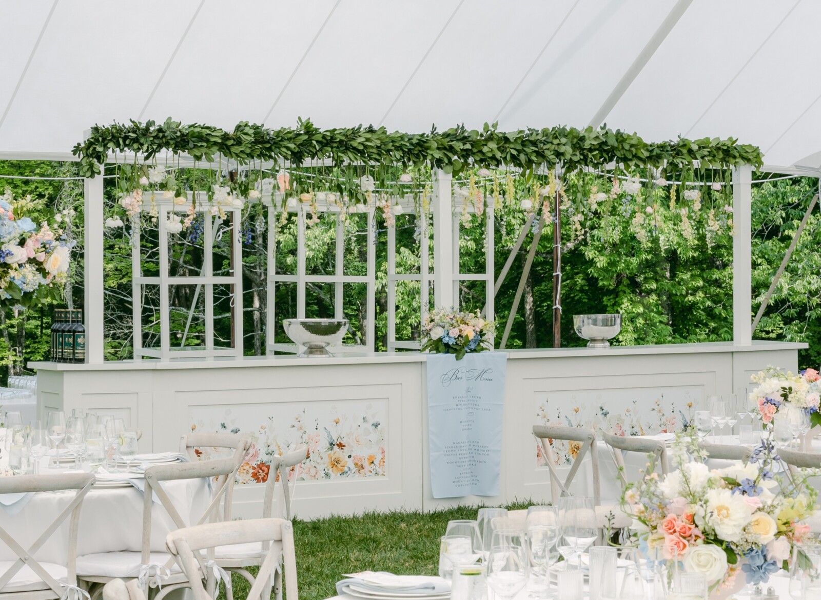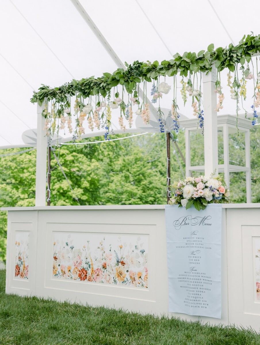 Our Whitney Pergola provides the perfect framework for hanging florals, signage or balloons to create a beautiful focal point over our custom bars. This modular system allows for many possible configurations, so you can choose which option best fits your event needs.