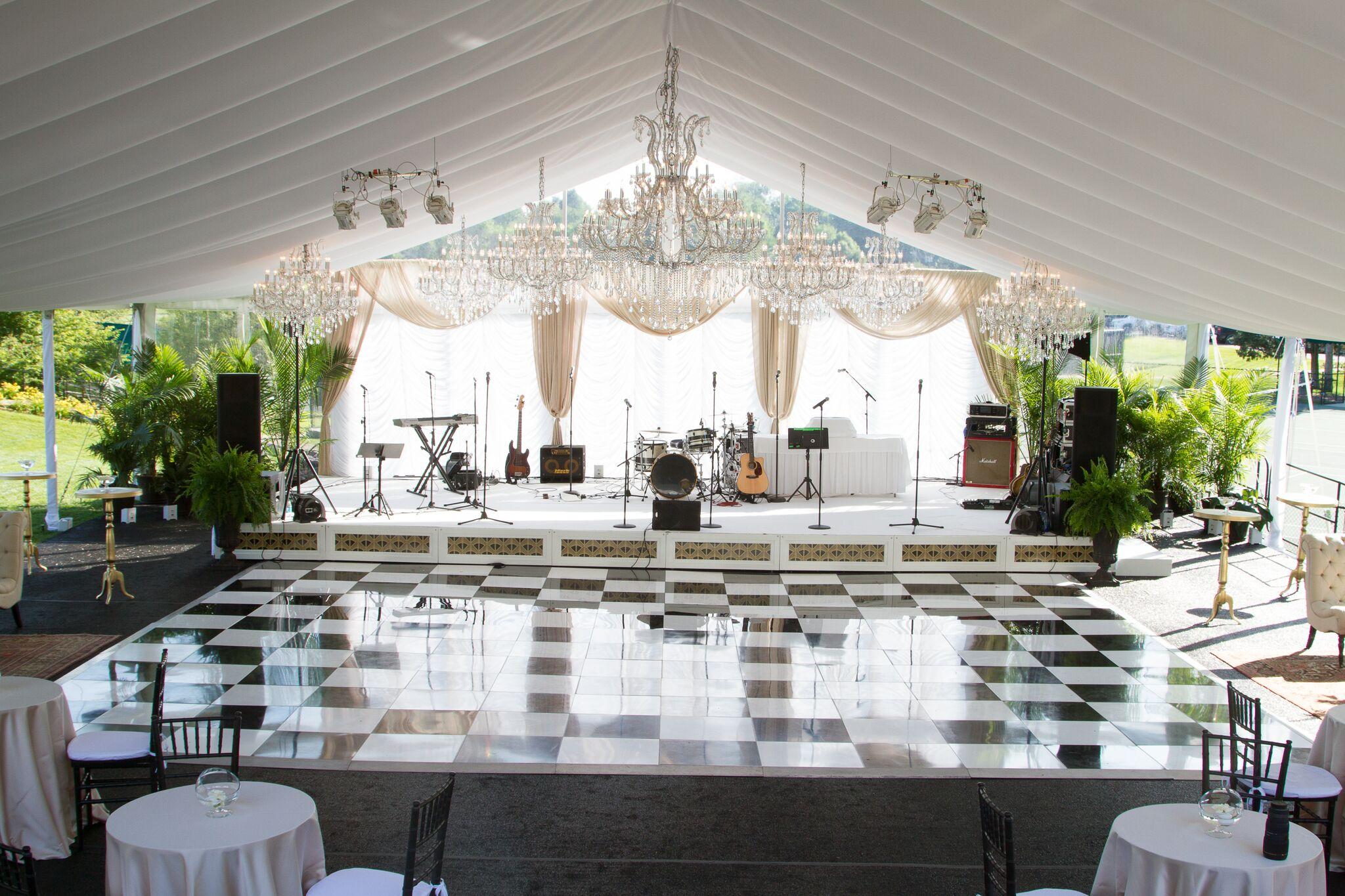 Dance floor rentals define the heart of your celebration, from classic wood looks to bold black-and-white designs. Ideal for weddings, parties, and corporate events hosted in tents, ballrooms, or under open Cincinnati skies.