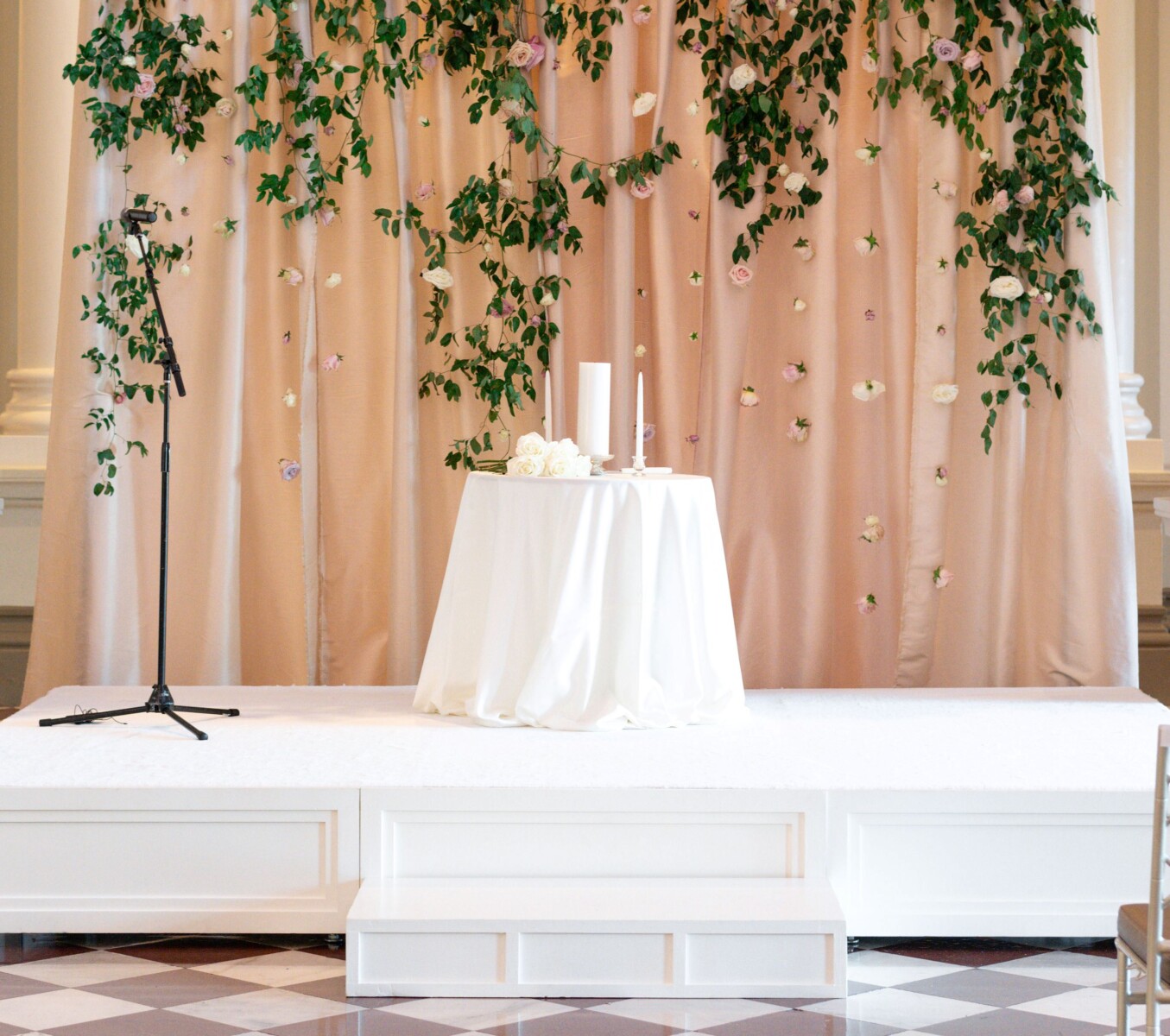 Draping rentals soften, frame, and transform walls, ceilings, and tents. Sheer panels and textured fabrics create ceremony backdrops, stage surrounds, and entrances that feel intentional – essential for wedding rentals, galas, and corporate presentations.